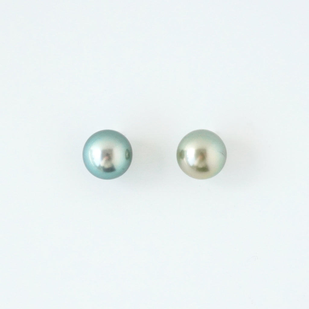引き締まった直径約8㍉というサイズ感に、ぎゅっと閉じ込められた瑞々しいブルーとイエローカラーが魅力的なペアパール。