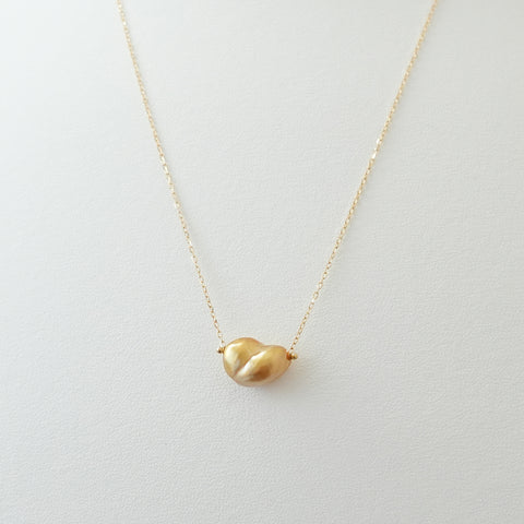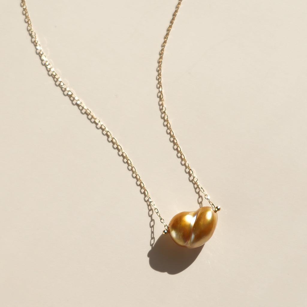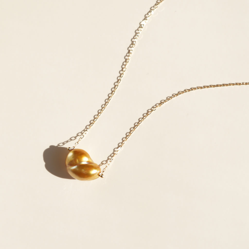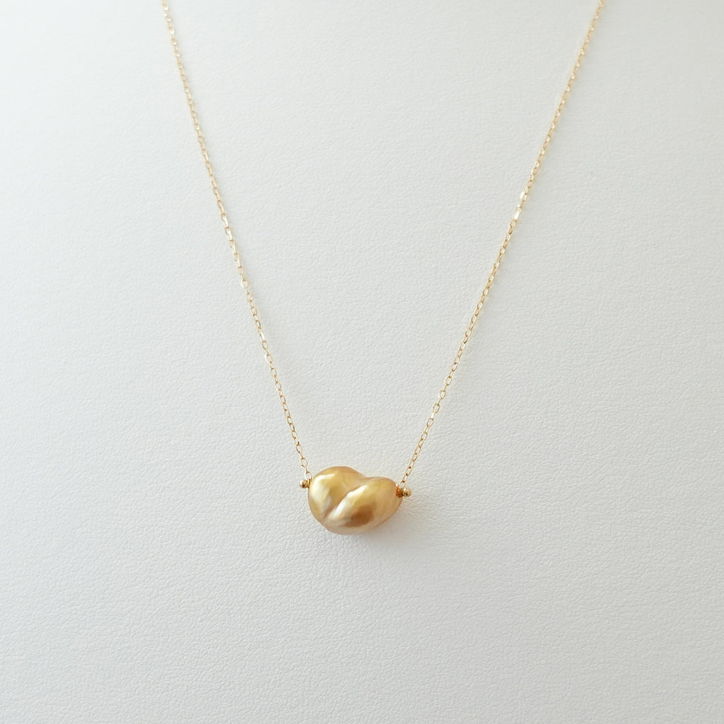 稀少なゴールドカラーの大粒白蝶ケシ真珠を使用したペンダントNuage(ニュアージュ)。